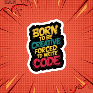 Add a splash of humor and creativity to your workspace with this bold “Born to Be Creative, Forced to Write Code” poster. Perfect for developers, designers, coders, and tech lovers who live between creativity and code.